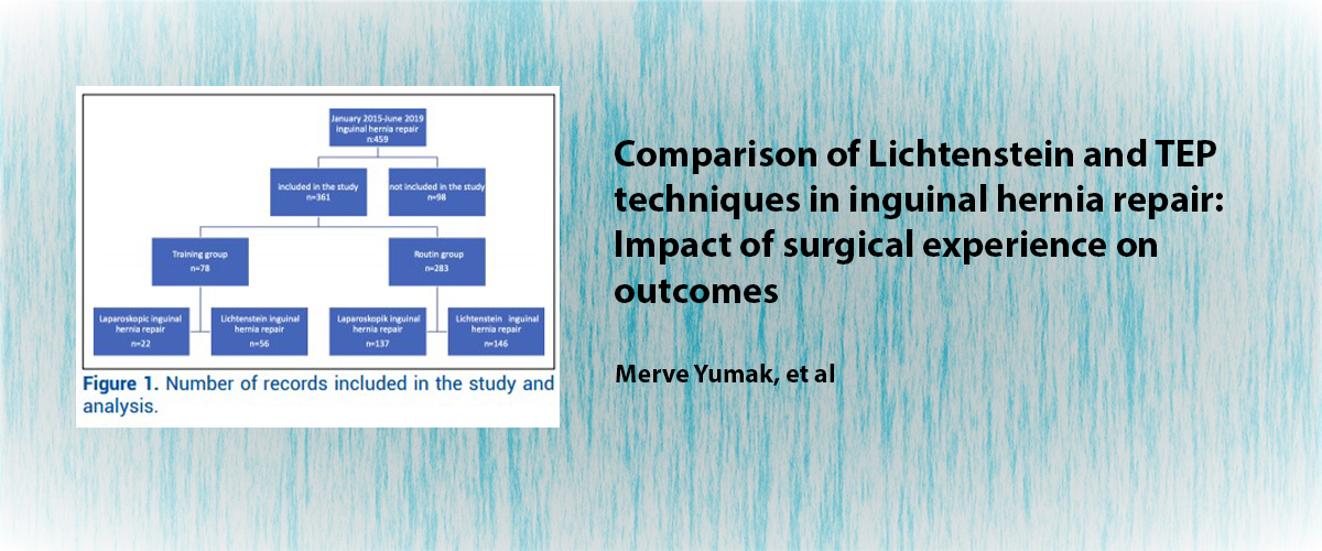 | 3. | Comparison of Lichtenstein and TEP techniques in inguinal hernia repair: Impact of surgical experience on outcomes Merve Yumak, Faik Yaylak doi: 10.14744/less.2025.59254 Pages 112 - 119